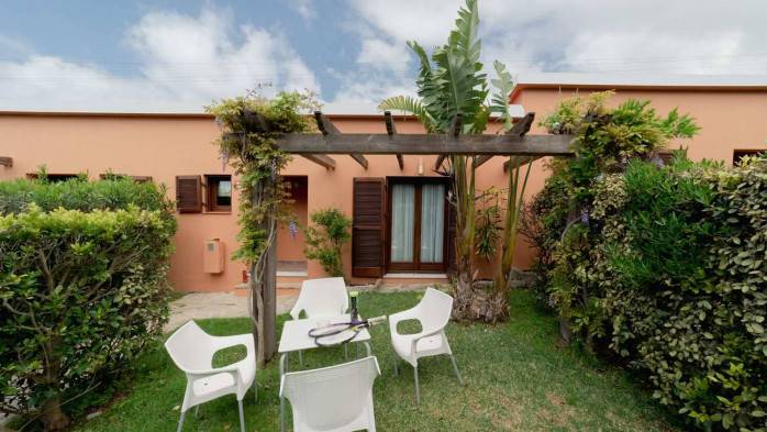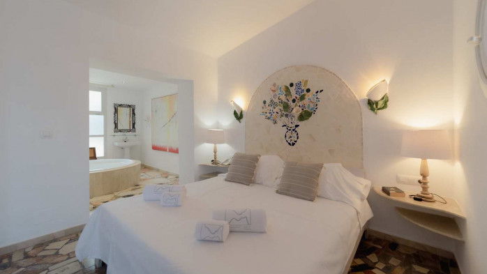 Our light and airy double and twin rooms will seduce you with their comfort and space. None of them measures less than 32 square meters. Beds vary between 160 and 180 cm size, and in case of two single beds, their width is 135 cm each. Please let us know if you prefer a double bed or twin beds. All rooms open on to the outside and have air conditioning, ceiling fan, television, minibar, safe and a garden area to relax outdoors.